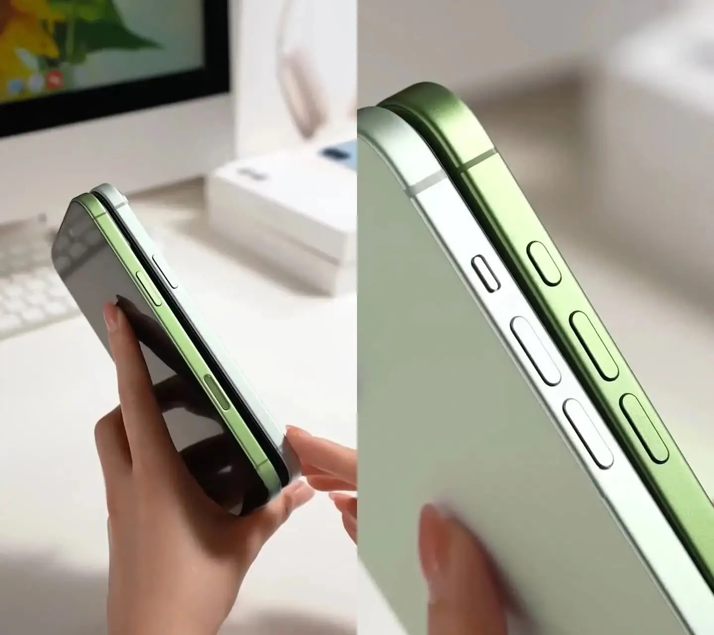 Hình ảnh so sánh còn cho thấy khả năng phản chiếu ánh sáng của màu xanh lá mới giúp chiếc điện thoại này trở nên nổi bật hơn dưới mọi góc nhìn, kể cả khi bạn đi trong điều kiện ánh sáng yếu hay ban ngày. Chính nhờ vậy, dù diện mạo bên ngoài tinh tế, sang trọng, chiếc iPhone này vẫn giữ được sức hút mạnh mẽ, phù hợp cho cả nam lẫn nữ.